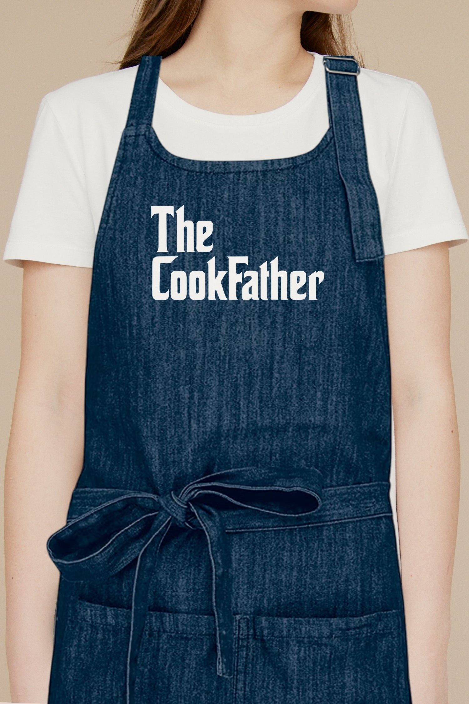 Le visuel “The CookFather” envoie un message clair : ici, c’est le chef qui décide. Idéal pour un barbecue, une cuisine ouverte, un événement, ou simplement pour cuisiner avec style et humour.