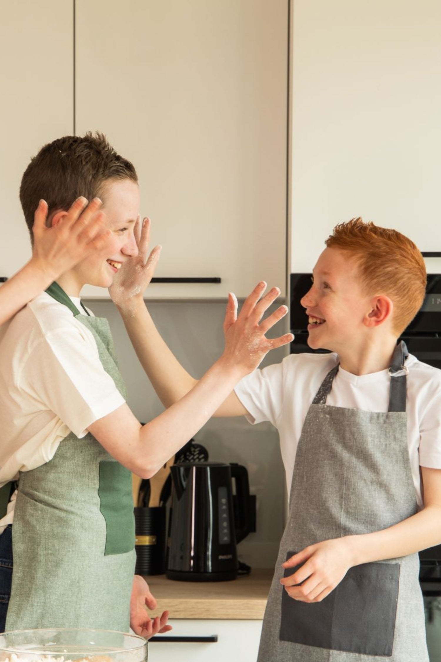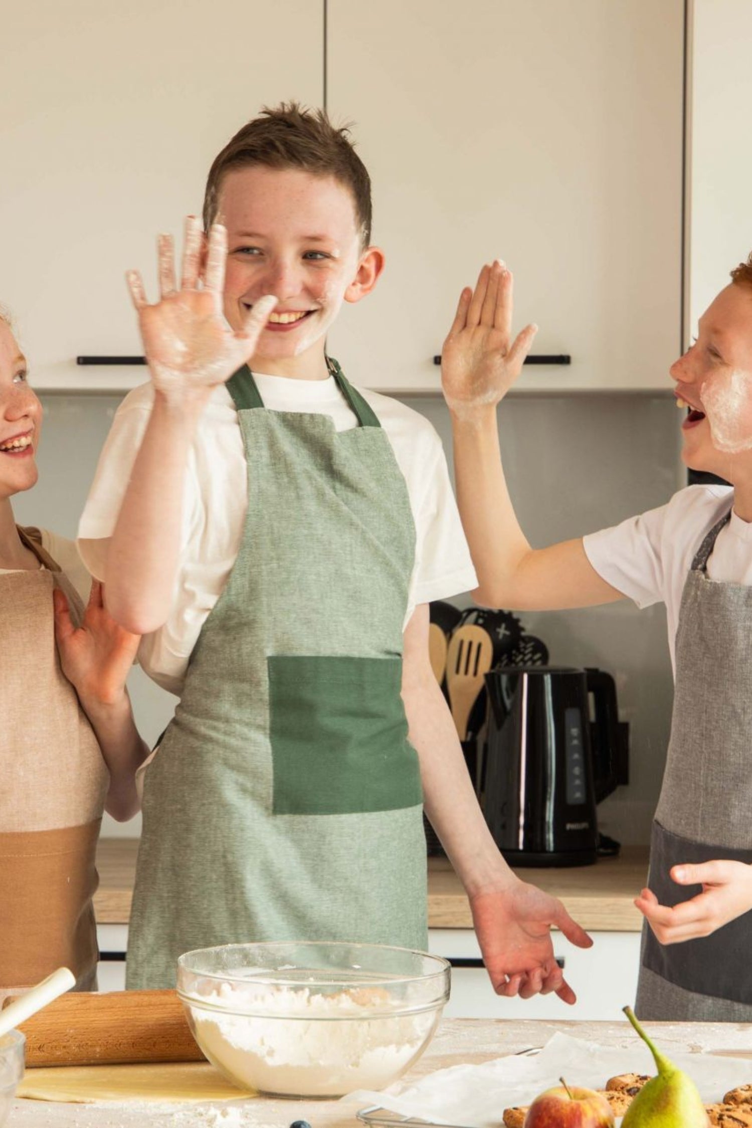 Ce tablier allie fonctionnalité et esthétique, parfait pour les petits chefs qui aiment s’amuser en cuisine tout en restant protégés.