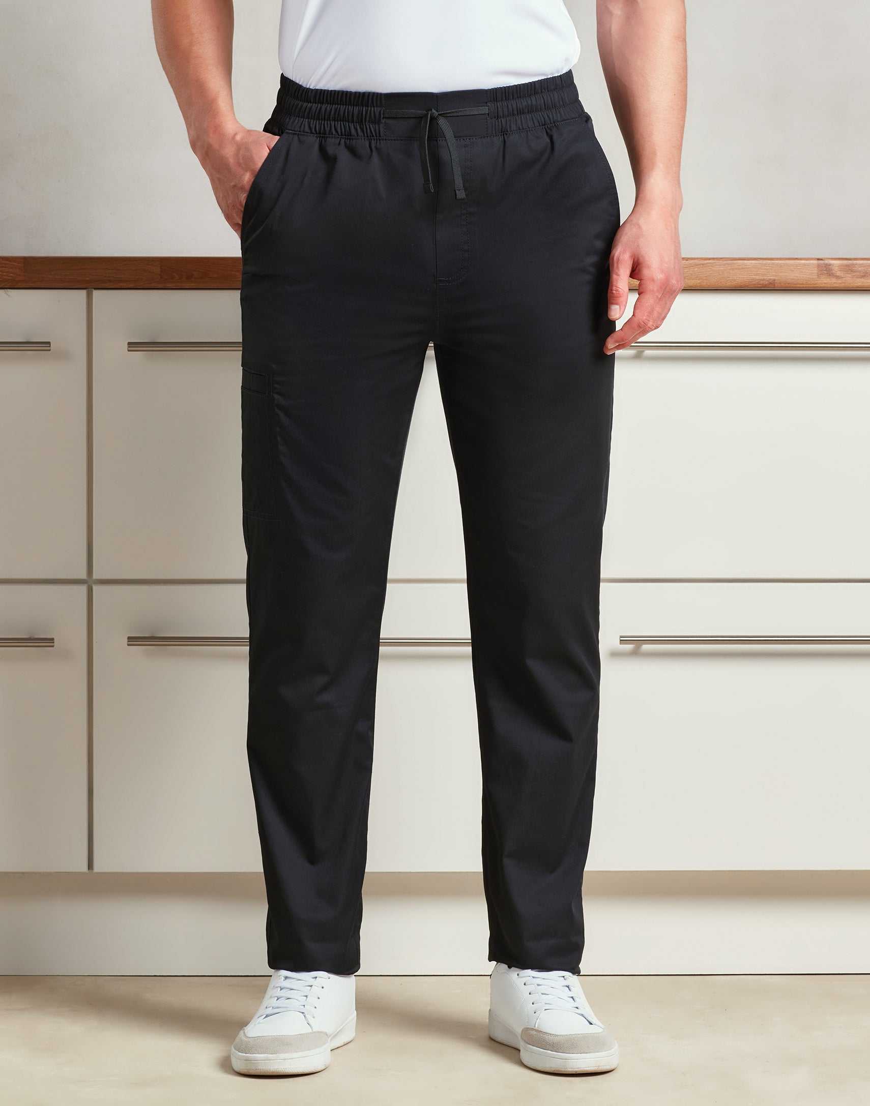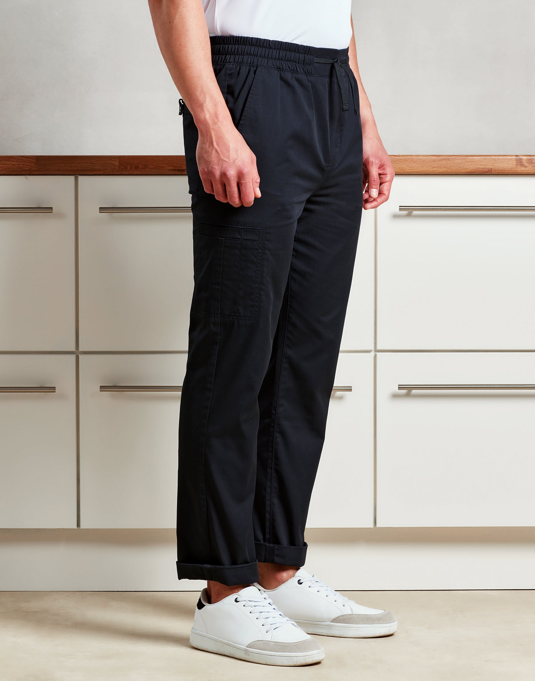 Mit 65 % recyceltem Polyester und 35 % Baumwolle bietet diese Cargo-Kochhose