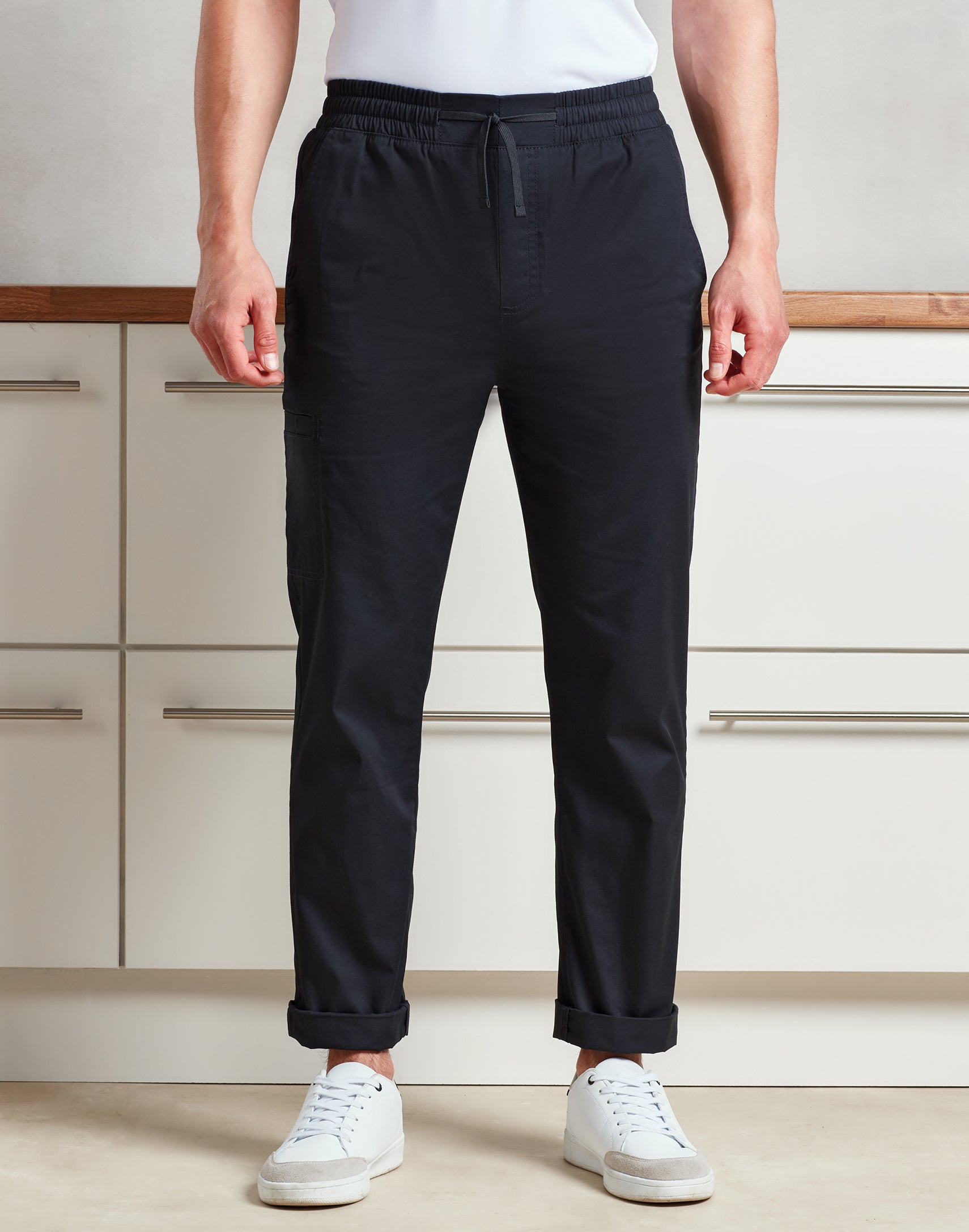 Für einen modernen Look in der Küche ist diese leichte Cargo-Kochhose die richtige Wahl.