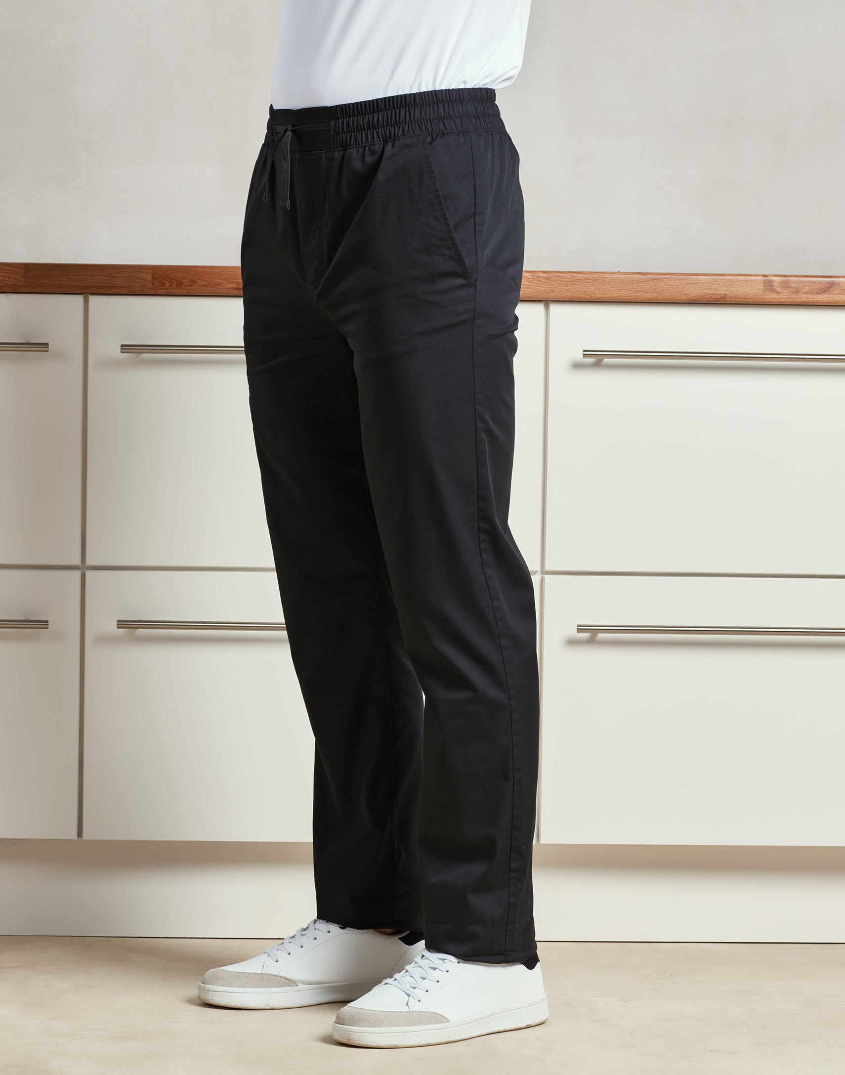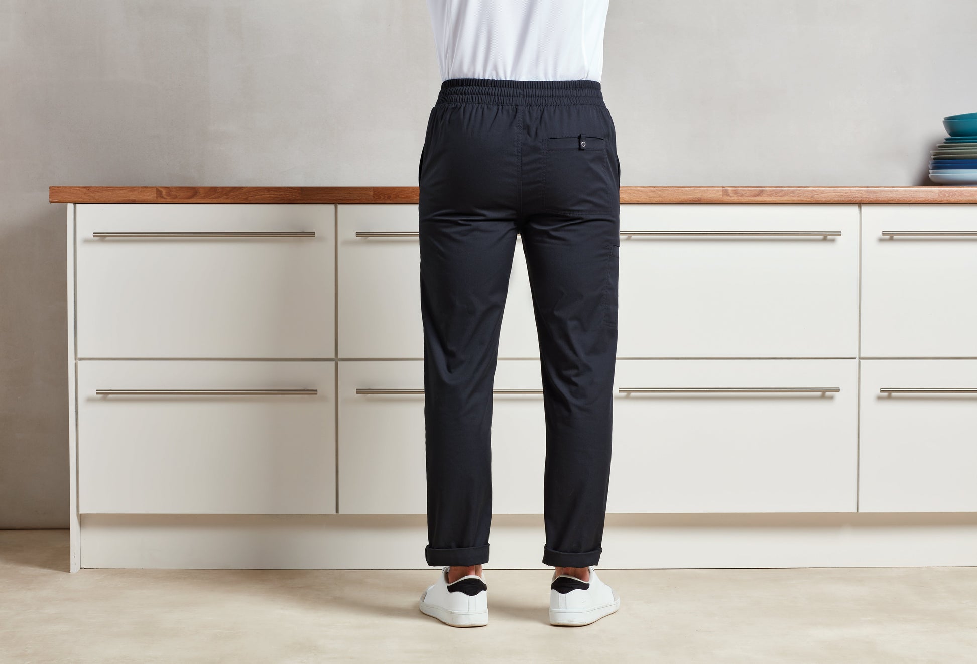 Die optional umschlagbaren Beinabschlüsse geben dir zusätzlich einen lässigen, zeitgemäßen Stil – perfekt für Service und Küche.