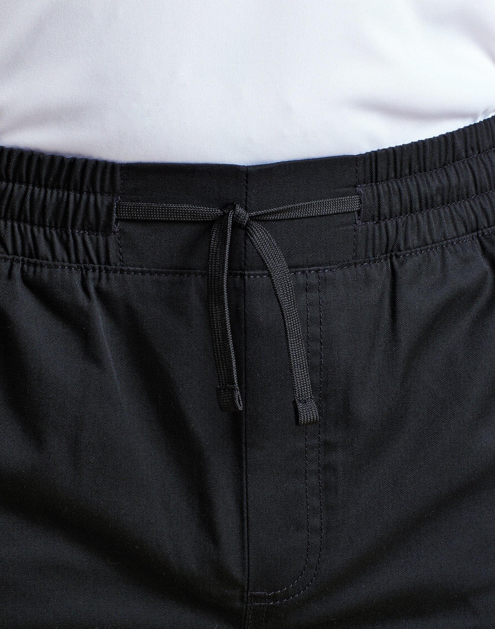 mehrere Taschen, elastischer Bund mit Kordelzug und eine schmal zulaufende Passform.