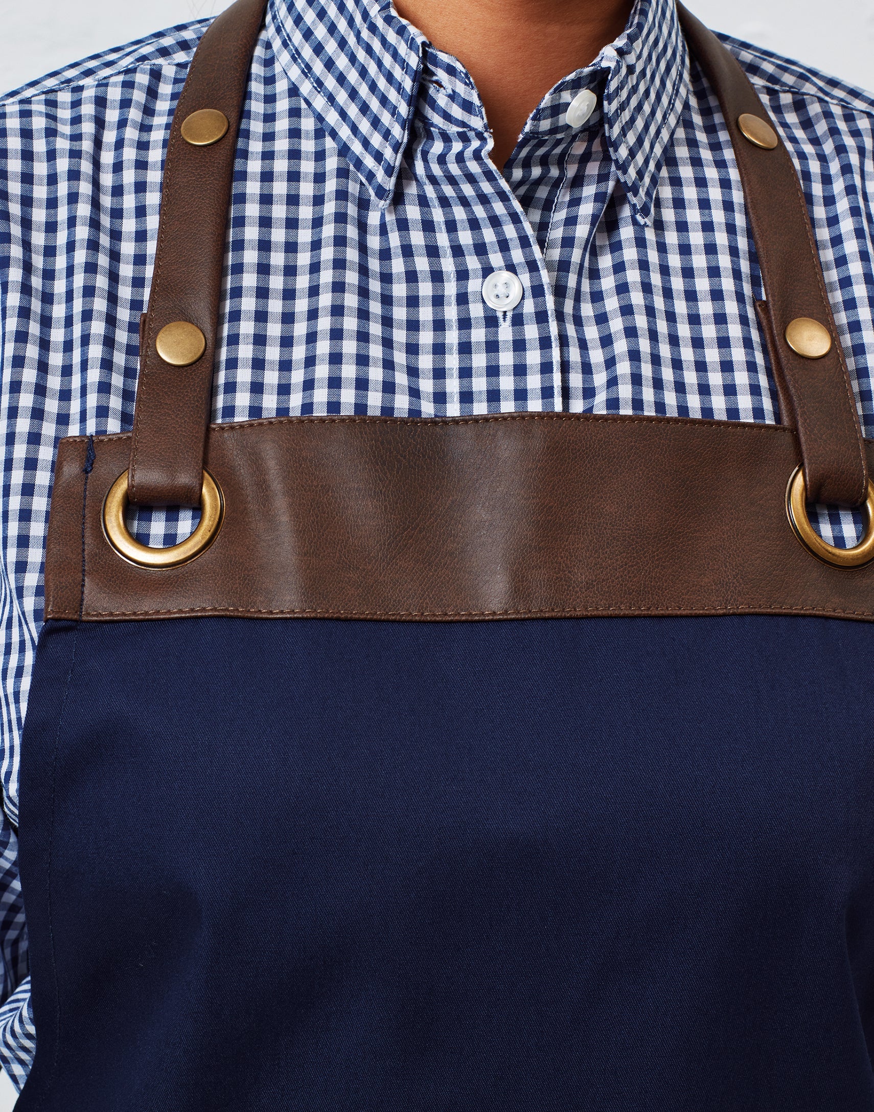 Ce tablier combine polyester-coton et similicuir pour un design moderne et tendance. Doté d'une finition en similicuir sur le haut avec des œillets et une bande de cou ajustable, il offre un ajustement parfait. La poche centrale cousue crée deux poches pratiques, ajoutant fonctionnalité et style à cet accessoire de cuisine incontournable.