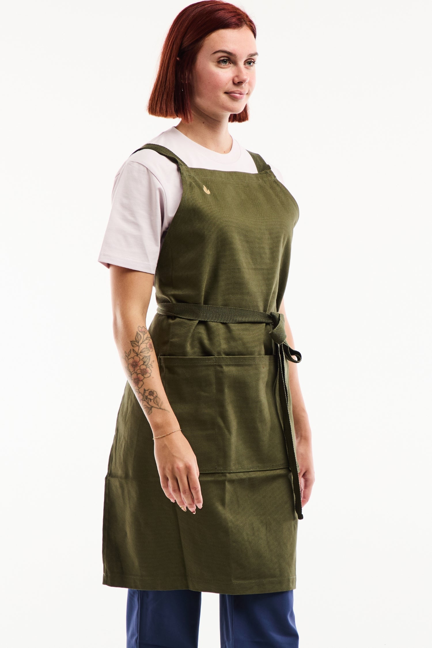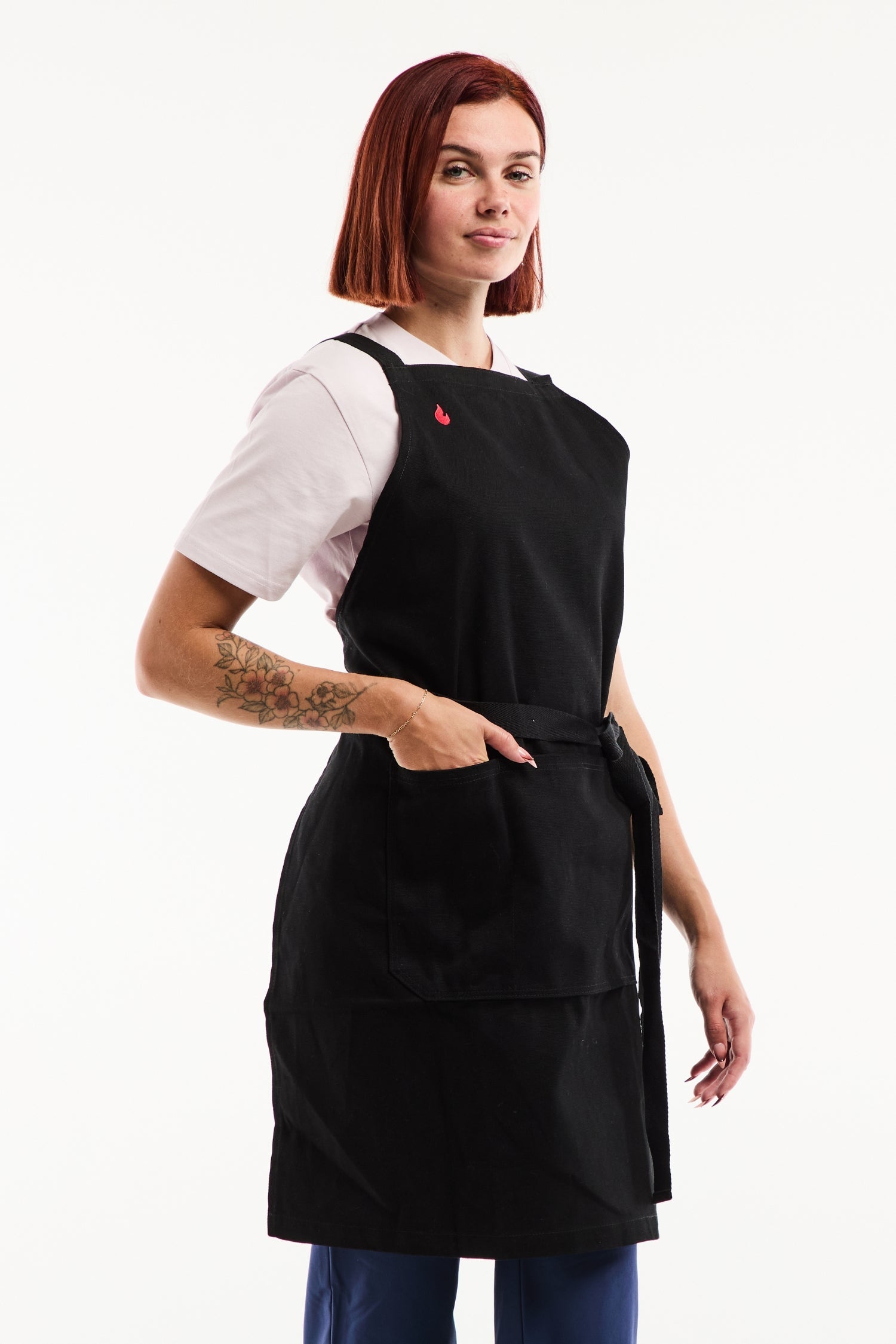 Die Flamme-Schürze wurde mit professionellen Anforderungen im Blick entworfen. Ihr dicker Canvas-Stoff und die verstärkten Details machen sie ideal für den täglichen intensiven Einsatz – ob in der Küche, im Atelier oder im Verkaufsraum. Die gekreuzten Träger verteilen das Gewicht optimal und ermöglichen volle Bewegungsfreiheit ohne Nackenbelastung.