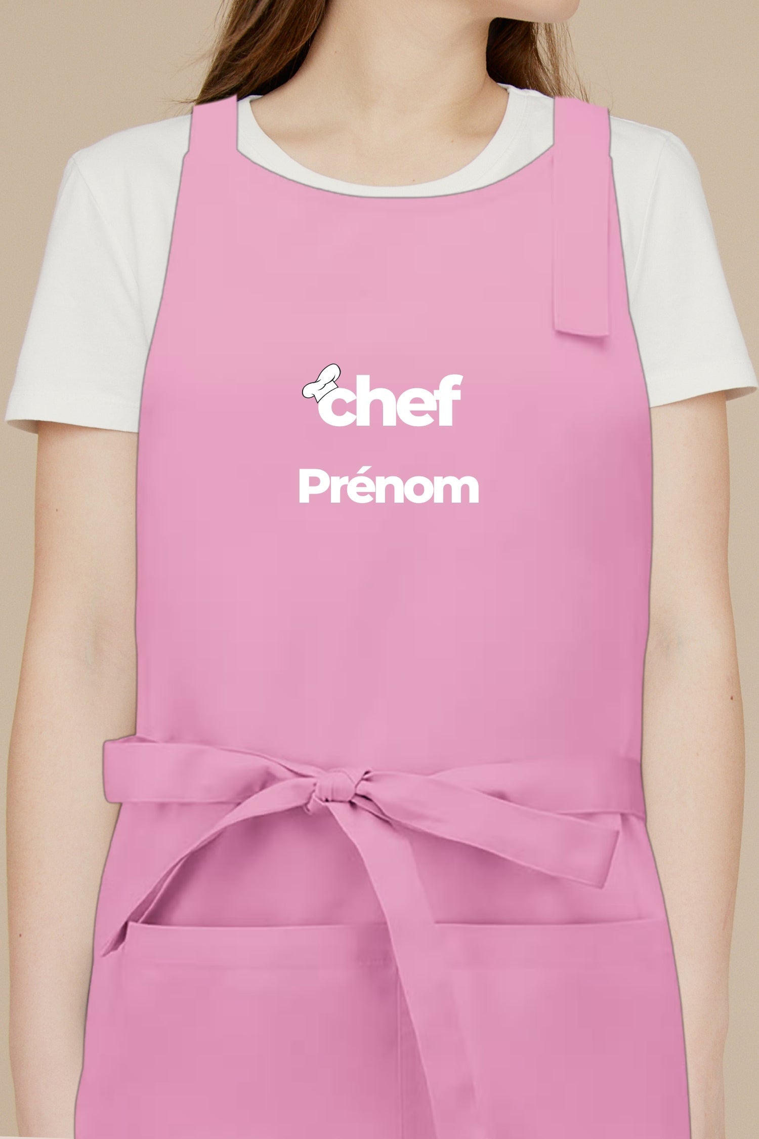 Le concept est simple : votre prénom devient votre signature en cuisine. Que ce soit pour le service, la pâtisserie, la cuisine ouverte ou un événement, le tablier “Chef Prénom” apporte une identité directe et professionnelle.