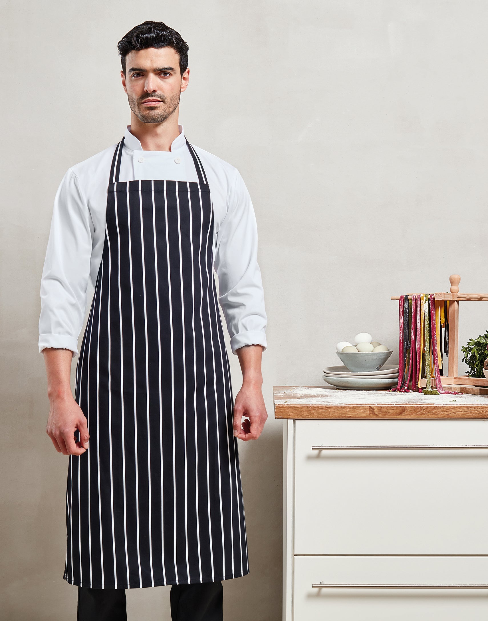 Gestreifte Latzschürze – professionelle Eleganz und hohe Strapazierfähigkeit