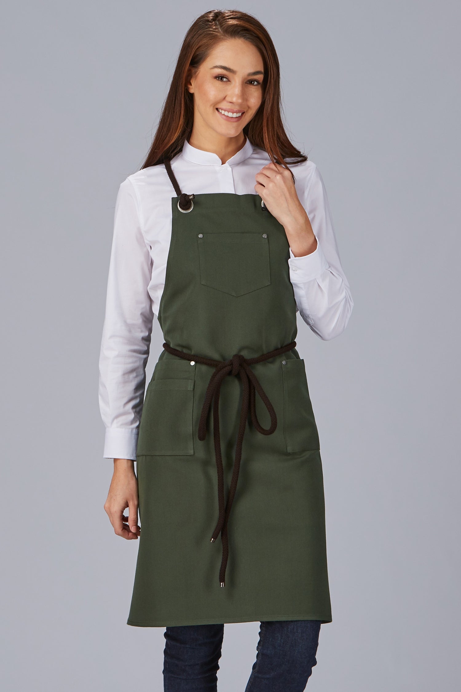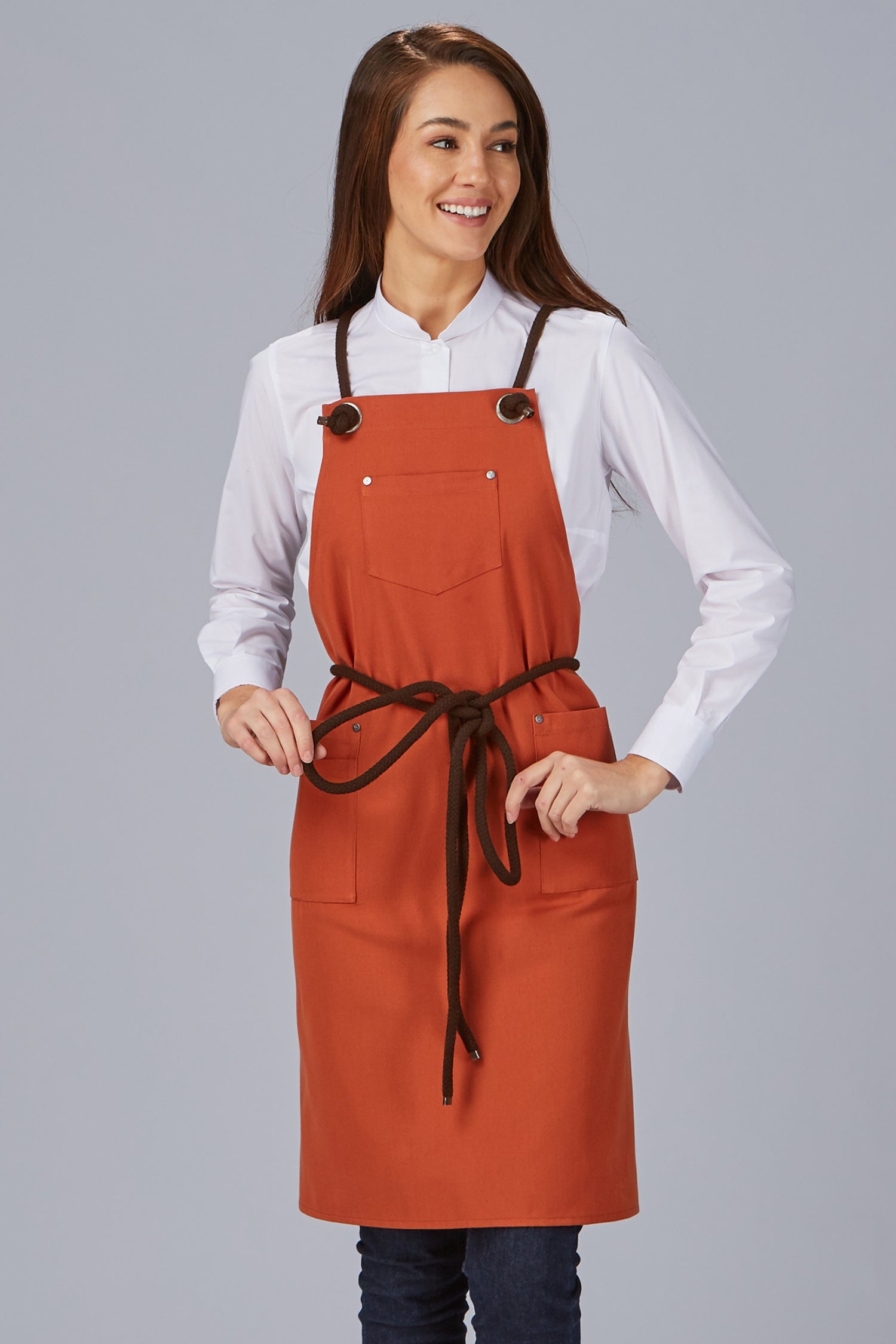 Diese Berufsschürze ist auf die Anforderungen schneller Services und langer Schichten ausgelegt. Die Ösen sorgen für stabilen Halt, der geflochtene Kordelzug ermöglicht ein schnelles Anpassen, und die 5 Taschen steigern Ihre Effizienz im Service. Das Design ist modern, gepflegt und stärkt das professionelle Erscheinungsbild Ihres Teams.