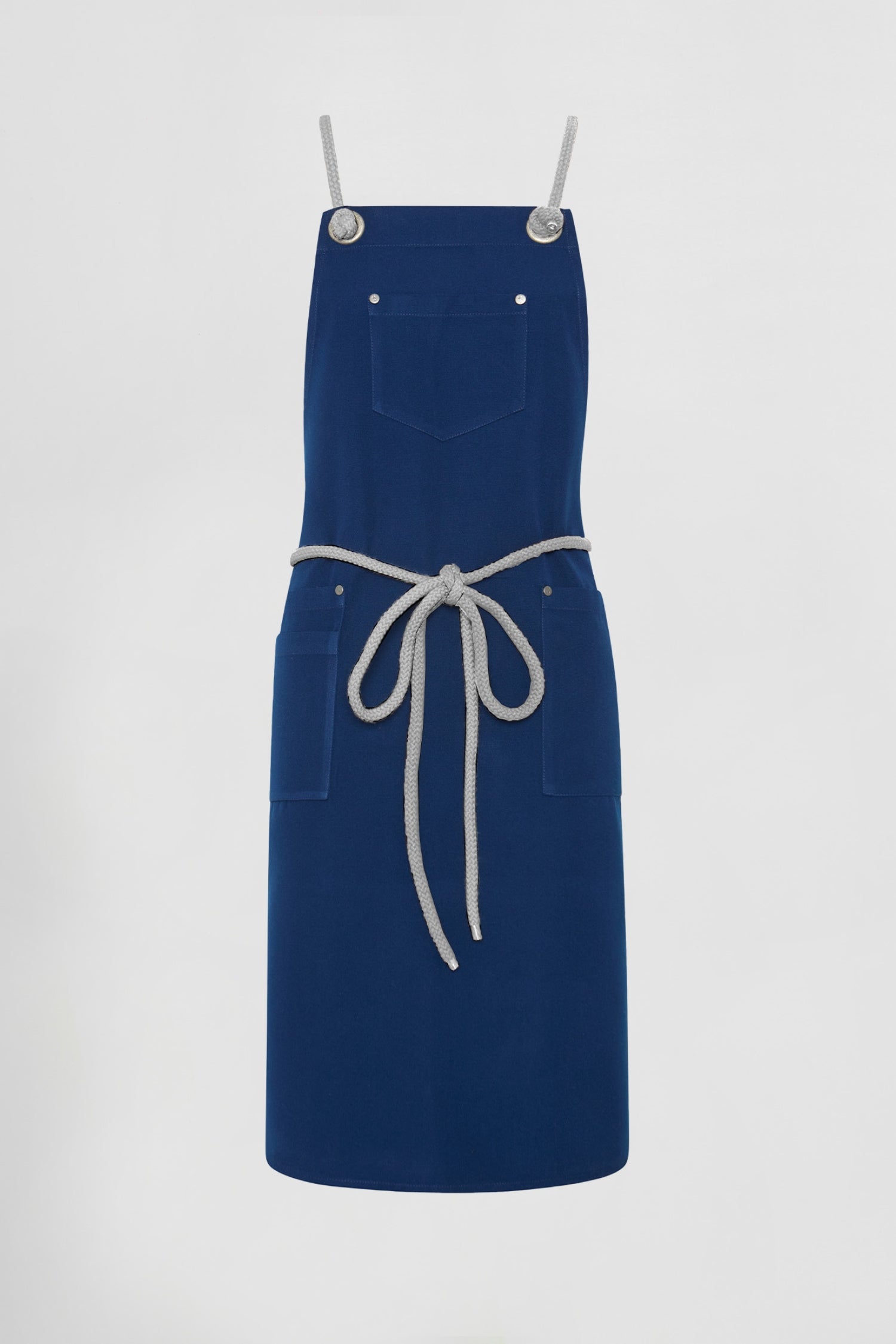 Die Schürze ist One Size (88 × 74 cm) und lässt sich dank verstellbarem Kordelzug schnell anpassen.