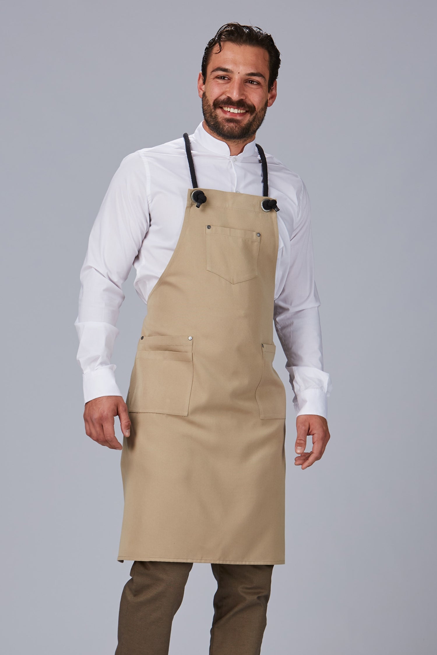 Diese Kochschürze mit Latz und geflochtenem Kordelzug wurde für die hohen Anforderungen in Gastronomie und Hotellerie entwickelt. Der Stoff Panama 100 % PC Acryl – 210 g/m² sorgt für hervorragende Strapazierfähigkeit und pflegeleichte Eigenschaften im Alltag. Ideal für Servicekräfte, Baristas, Chef de Rang und Teams im Service bietet diese Berufsschürze eine optimale Organisation dank 5 Fronttaschen und perfekten Halt durch Ösen vorne und hinten.