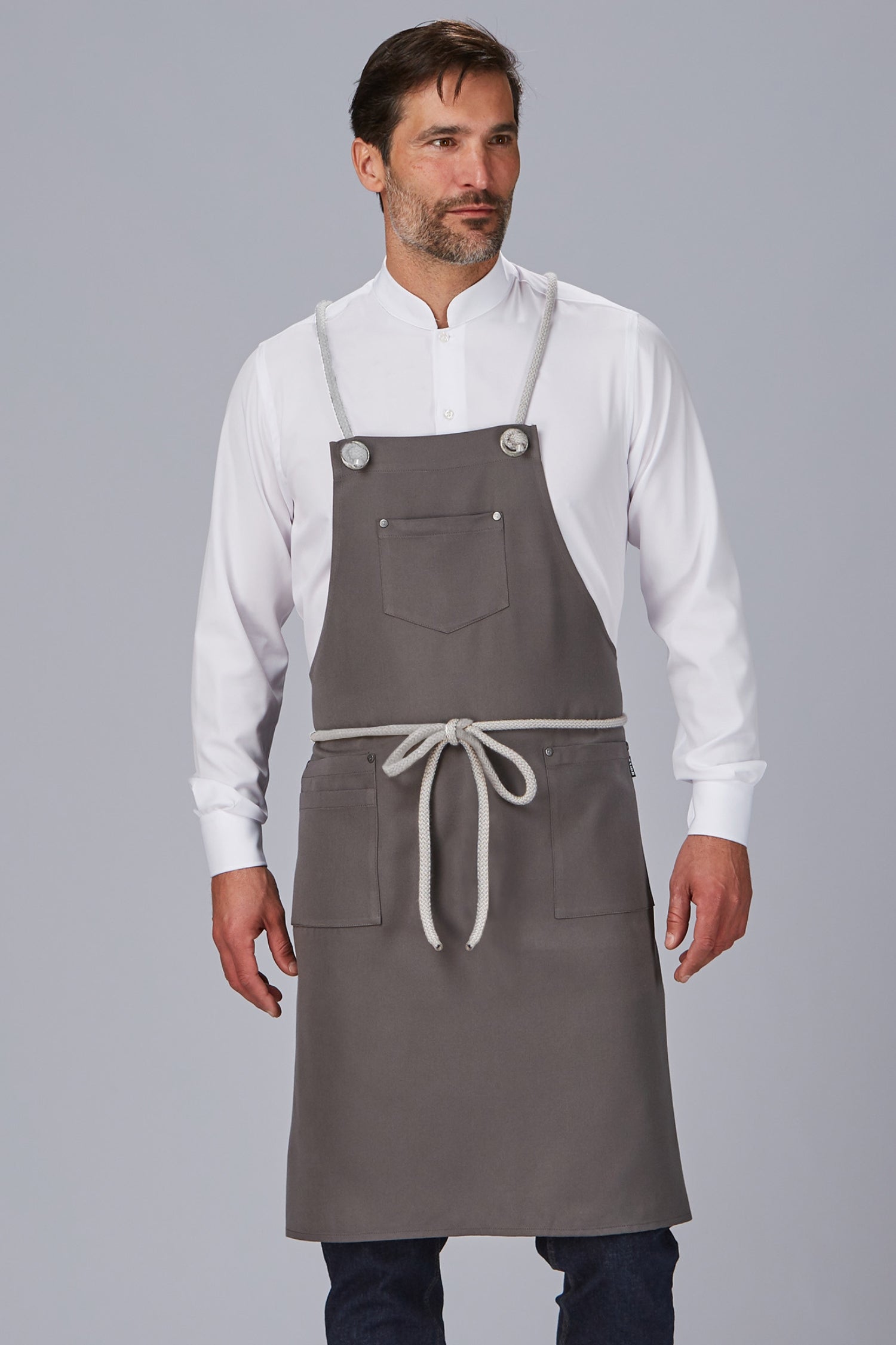 One Size (88 × 74 cm) mit verstellbarem Kordelzug für ein schnelles Anpassen an unterschiedliche Körperformen. Die praktische Schnittführung sorgt für optimale Bewegungsfreiheit im Service oder hinter der Bar.