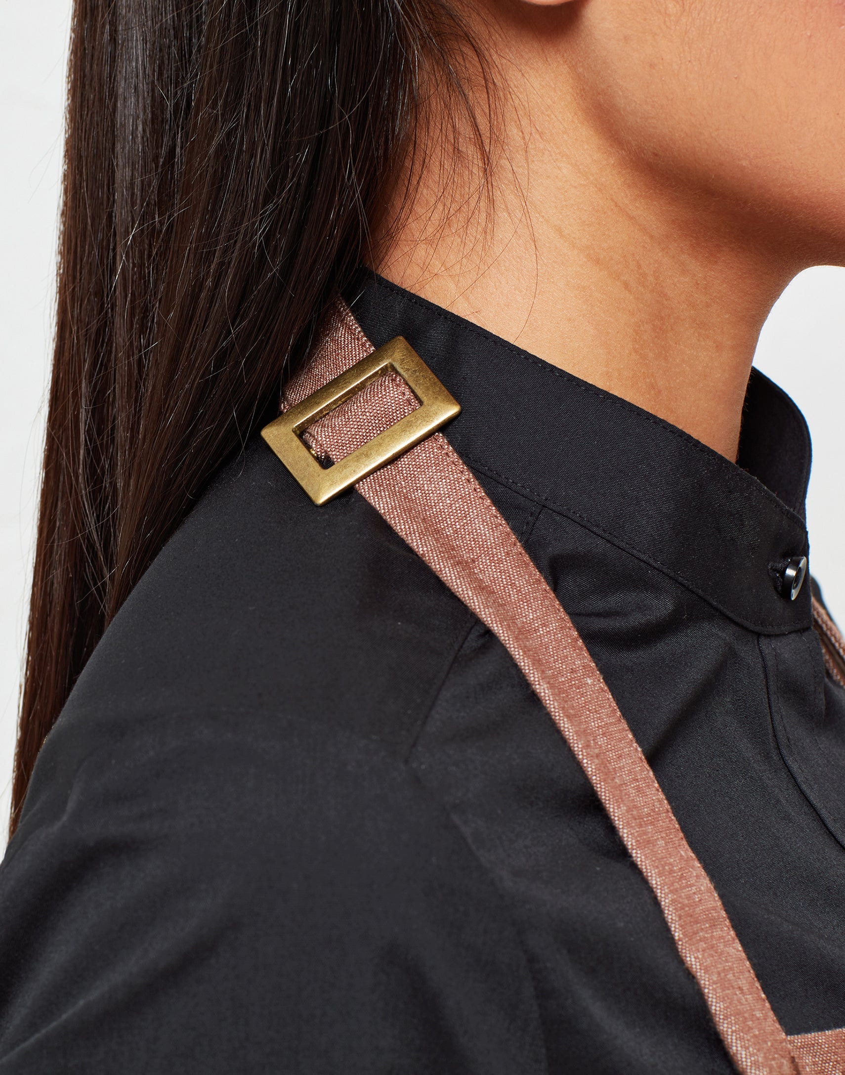 • Lanière autour du cou à boucle en laiton antique/bronze nickelé pour le réglage de la hauteur
