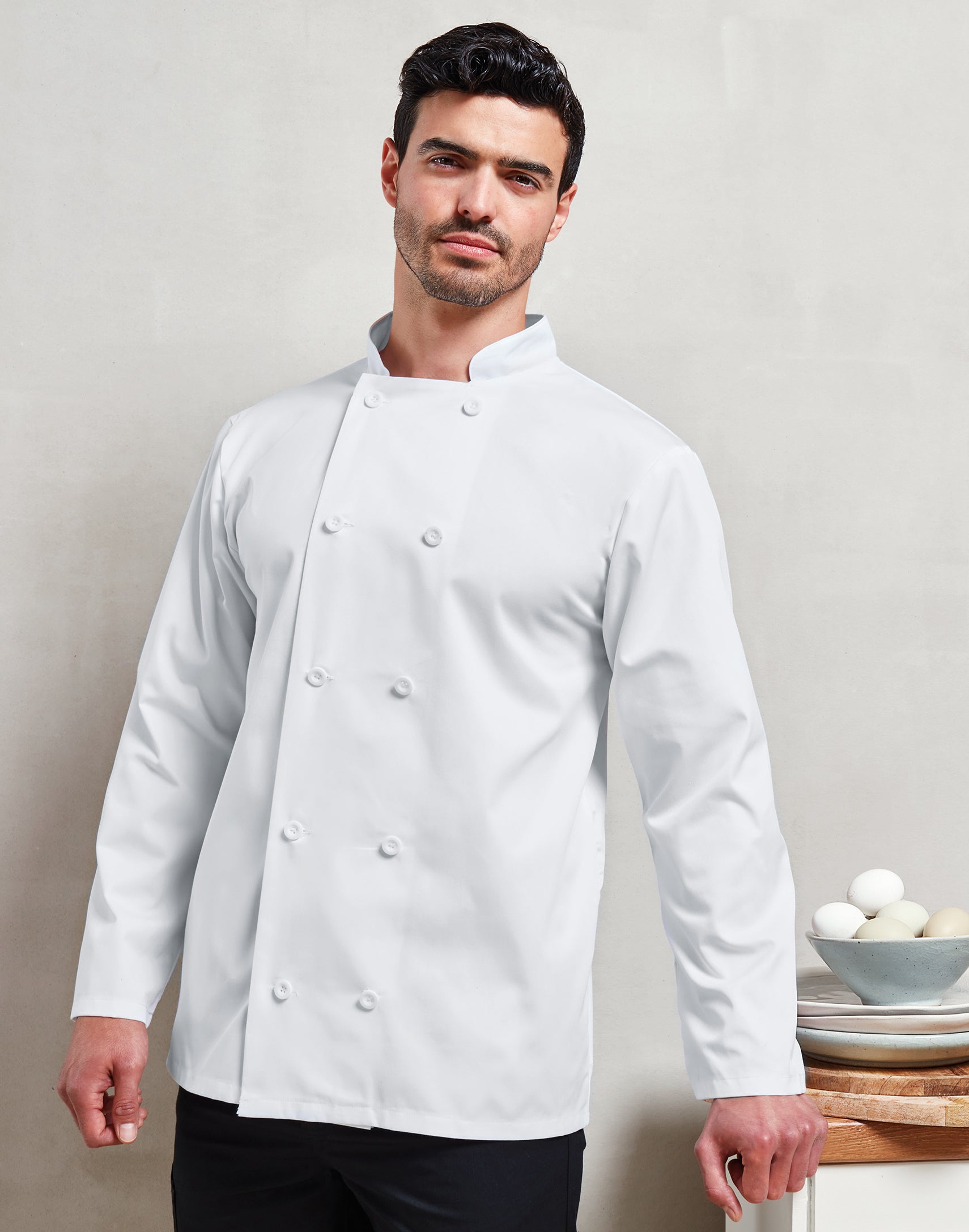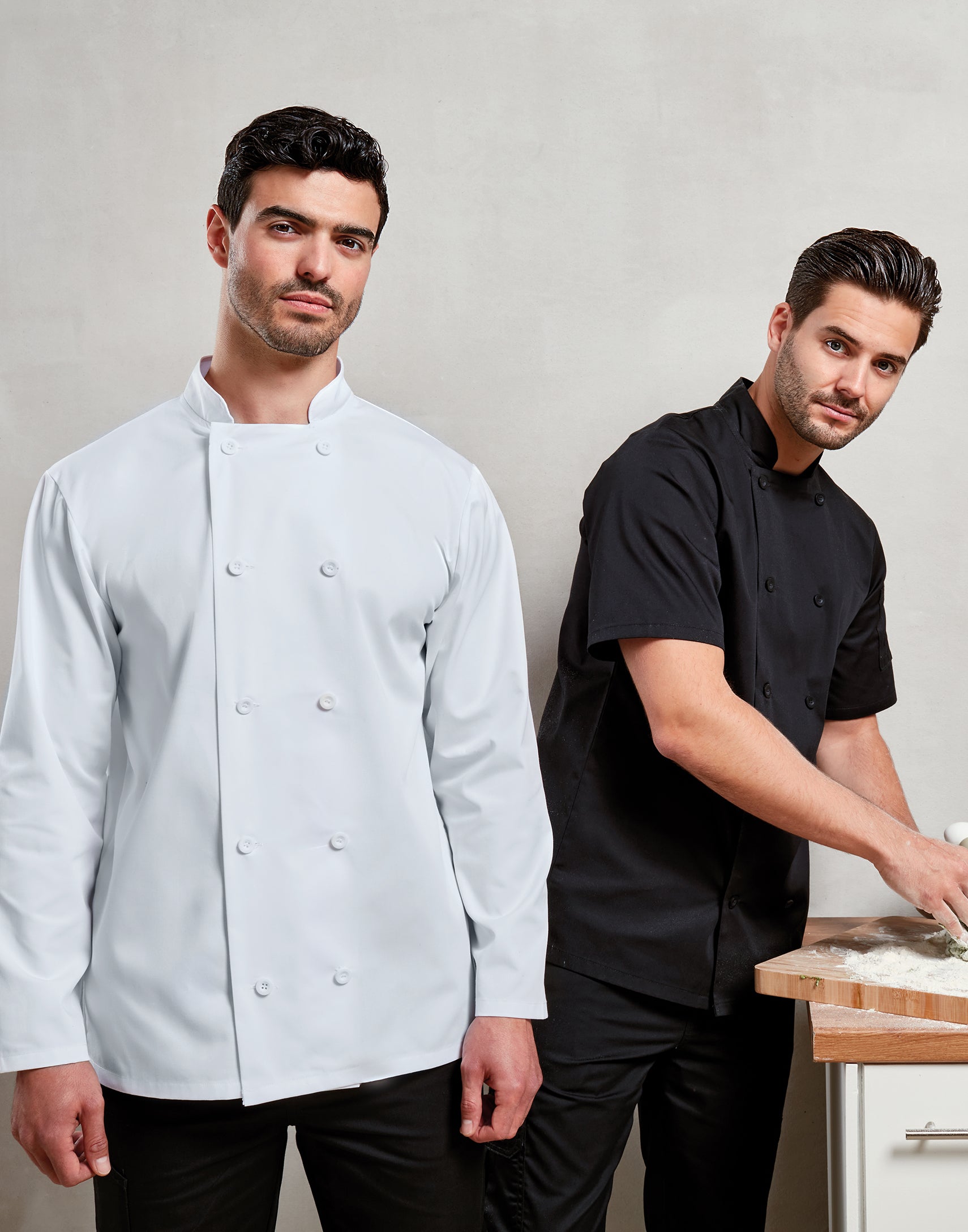Cette veste de cuisine à manches longues est entièrement personnalisable pour correspondre à votre style unique. Choisissez parmi une gamme de couleurs et de tailles pour créer l'uniforme parfait pour votre équipe.